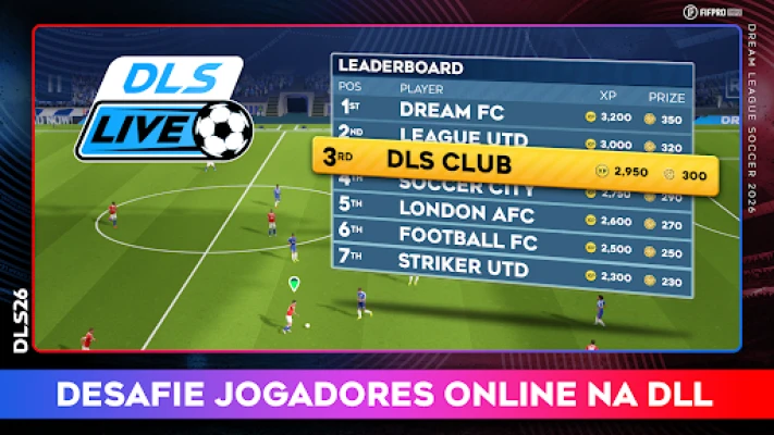 Dream League Soccer 2026 te lança no coração da ação futebolística! Crie seu time dos sonhos com mais de 4.000 atletas FIFPRO™ licenciados. Desafie os melhores clubes, suba por 8 divisões e viva a paixão do esporte com movimentos 3D imersivos e personalizações únicas.
