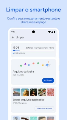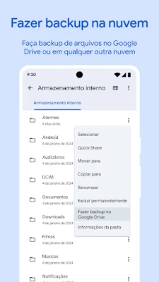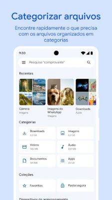 Vá além da organização com recursos que enriquecem sua experiência. Mantenha suas músicas e vídeos favoritos acessíveis offline, utilizando o player integrado com controles avançados, como velocidade de reprodução e ordem aleatória. Proteja suas informações mais importantes e preserve o espaço do seu aparelho fazendo backup para o Google Drive, um cartão SD ou outros serviços de armazenamento em nuvem disponíveis. Além disso, o Files do Google aprende com seus hábitos e oferece recomendações inteligentes para otimizar o uso do espaço, fortalecer a segurança e aprimorar a gestão geral do seu dispositivo, tornando-se mais útil a cada interação.