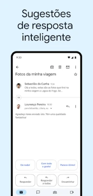 Otimize o seu dia com funcionalidades inteligentes que simplificam a gestão de emails. A Resposta Inteligente oferece sugestões rápidas para acelerar as suas mensagens, enquanto a pesquisa robusta localiza qualquer email com resultados instantâneos e previsões úteis. Alterne facilmente entre várias contas e receba notificações oportunas para nunca perder uma mensagem importante. Para uma conveniência ainda maior, a app expande a sua funcionalidade para o Wear OS, permitindo um acesso rápido e uma visão geral dos seus emails diretamente no seu pulso. Como parte integrante do ecossistema Google Workspace, Gmail capacita-o a fazer mais, com menos esforço.