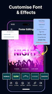 A personalização está no coração de Business Ads Maker for Digital Marketing. Tenha controle total sobre suas criações, adicionando seu logotipo e informações essenciais da empresa — como telefone, e-mail e website — com liberdade para posicionar e redimensionar onde desejar. Explore uma vasta biblioteca de fontes em constante atualização, ajustando suas cores e opacidade para garantir que cada postagem reflita perfeitamente a estética da sua marca. Seja para utilizar suas próprias imagens ou vídeos, o aplicativo simplifica o processo de integrar sua identidade visual com apenas um toque, transformando qualquer conteúdo em uma poderosa ferramenta de branding.