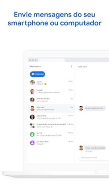 Descubra Mensagens Google, a experiência oficial de comunicação da Google. Com o protocolo RCS, partilhe fotos e vídeos em alta resolução, participe de chats em grupo vibrantes e conecte-se facilmente com qualquer pessoa, incluindo utilizadores de iPhone. Uma nova era para as suas conversas.