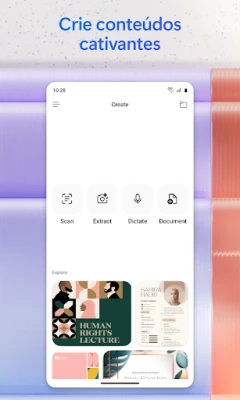 A sua criatividade também ganha asas com o Microsoft 365 Copilot. Crie e edite imagens apelativas, cartazes, faixas e até vídeos, utilizando modelos intuitivos para dar vida às suas ideias mais ambiciosas. Digitalize documentos, fotografias e notas diretamente com a câmara do seu telemóvel, transformando o físico em digital com facilidade. Para a gestão de projetos, o Bloco de Notas do Copilot oferece um espaço para reunir ideias, documentos e ligações, pedindo ao Copilot para resumir e conectar os pontos essenciais. Carregue e guarde documentos Word, Excel ou PDF do seu telefone, interagindo diretamente com o Copilot para obter respostas e armazenar o conteúdo gerado. Tudo isto, com acesso integrado a ficheiros Word, Excel, PowerPoint e PDF, numa única aplicação da Microsoft. Comece a explorar estas capacidades iniciando sessão com a sua conta pessoal, escolar ou profissional da Microsoft.