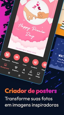 A versatilidade de **Postro** estende-se a inúmeros projetos, desde o pessoal ao profissional. Com ele, você pode dar vida a convites de casamento memoráveis, cartões de aniversário personalizados ou publicações diárias inspiradoras para o Instagram, WhatsApp e Facebook. Crie stories dinâmicos, cite seus poemas ou pensamentos, e desenvolva logos comerciais ou cartões de visita elegantes. A ferramenta ainda permite a criação de impressionantes papéis de parede HD para seu celular, além de banners e posts para qualquer festival ou evento, garantindo que sua mensagem seja sempre notada.